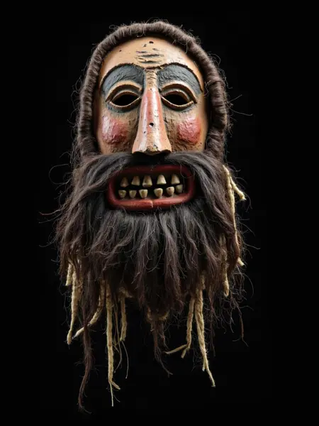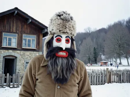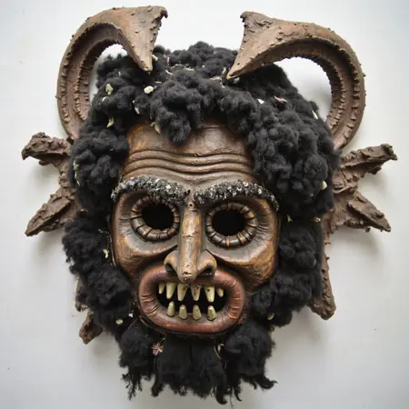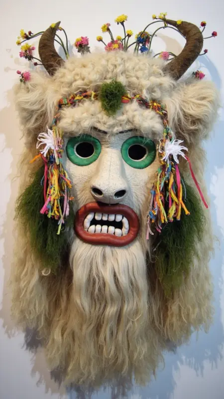 “罗马尼亚传统面具通常由动物皮毛、骨骼和织物制成,用于前基督教时期的民间习俗,如冬季仪式和季节性舞蹈。这些面具与特定的人物和传统相关联,也用于婚礼、收获等不同的人生事件和仪式。”