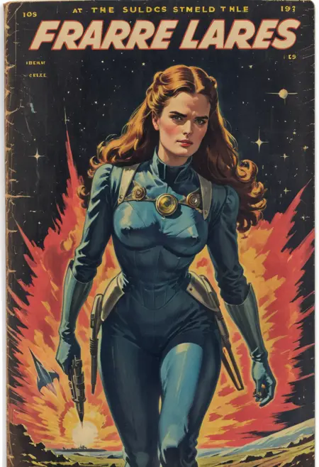 该 LoRA 比基础 Flux 更能增强“粗粝感”、“复古感”和“通俗小说感”,训练数据来自 40-50 年代的 23 张通俗小说风格漫画封面。