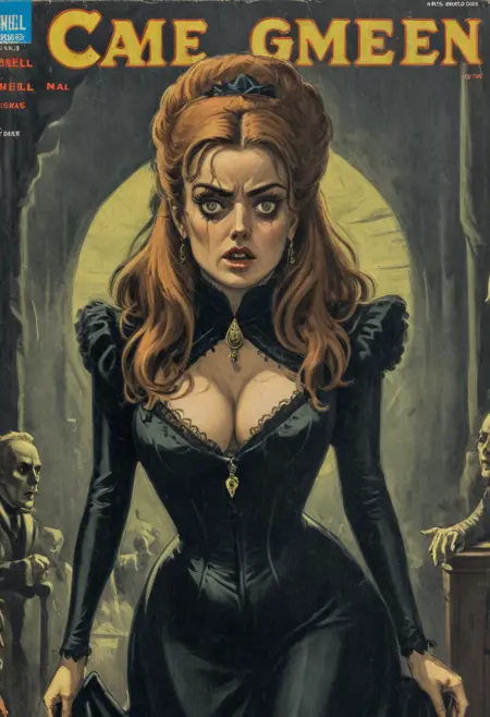 Artwork Trigger:vintage comic book style or simply avoid using quotation-marks or mentioning title/text etc