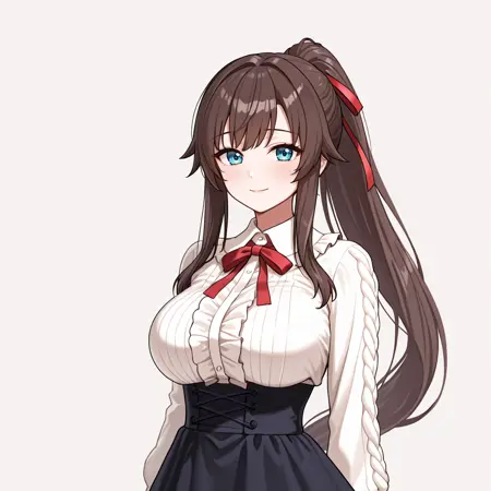 - コマンダー衣装付きトリガー:TermichanCommander, 1girl, 黒タイツ, グリフィン&クリューガー軍服, 皮膚の凹凸, 帽子, 黒手袋, 短パン, ベレー帽, 大きな胸, 白シャツ, 青い目, ファー縁取り, 赤いジャケット, ベルト, 赤リボン, 茶色の髪, 黒チョーカー, 锁骨, 長袖, 赤い頭部装具, 髪リボン, 黒ショートパンツ, ファー縁取りジャケット, サイドポニーテール, ローファー, 開いたジャケット, 開いた服, 前髪, サイドロックス, 首リボン, ボタンシャツ