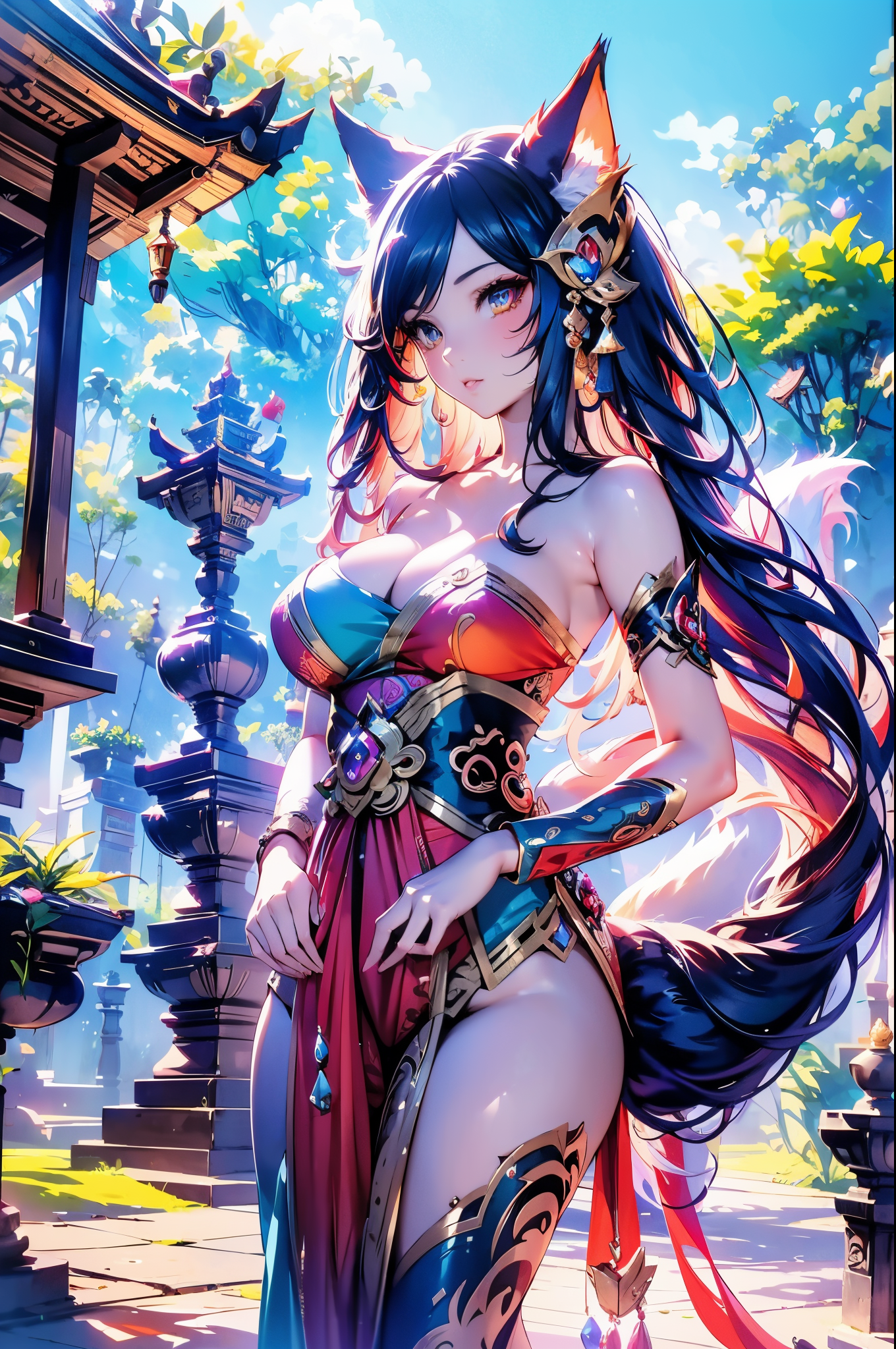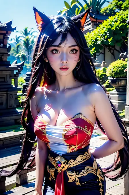 Ahri, League of Legends, kebaya Bali dress, Nine tailed Fox