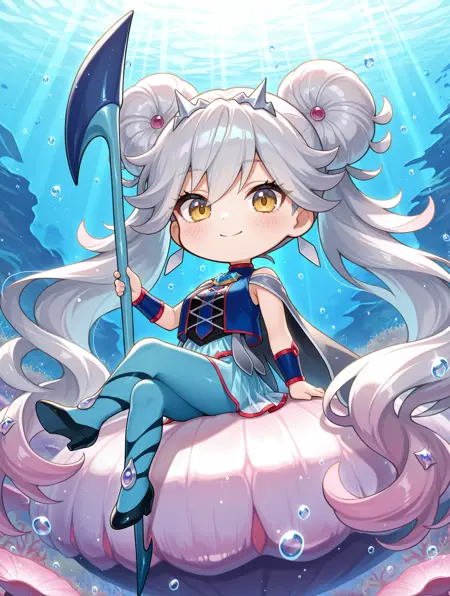 标签(其他):巨大贝壳,坐在贝壳上,珊瑚,水下,气泡,官方风格