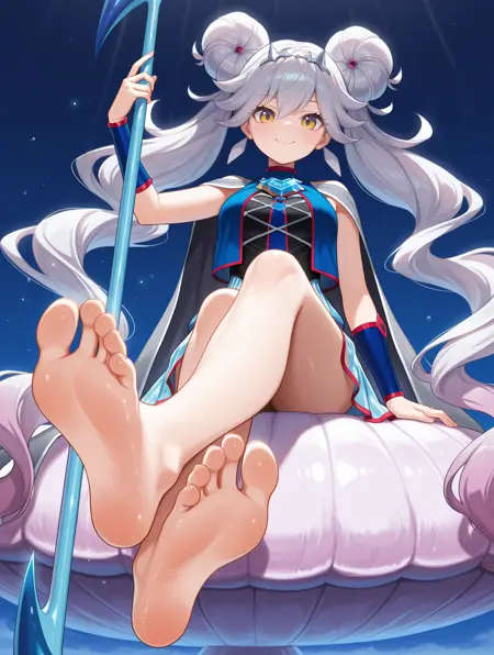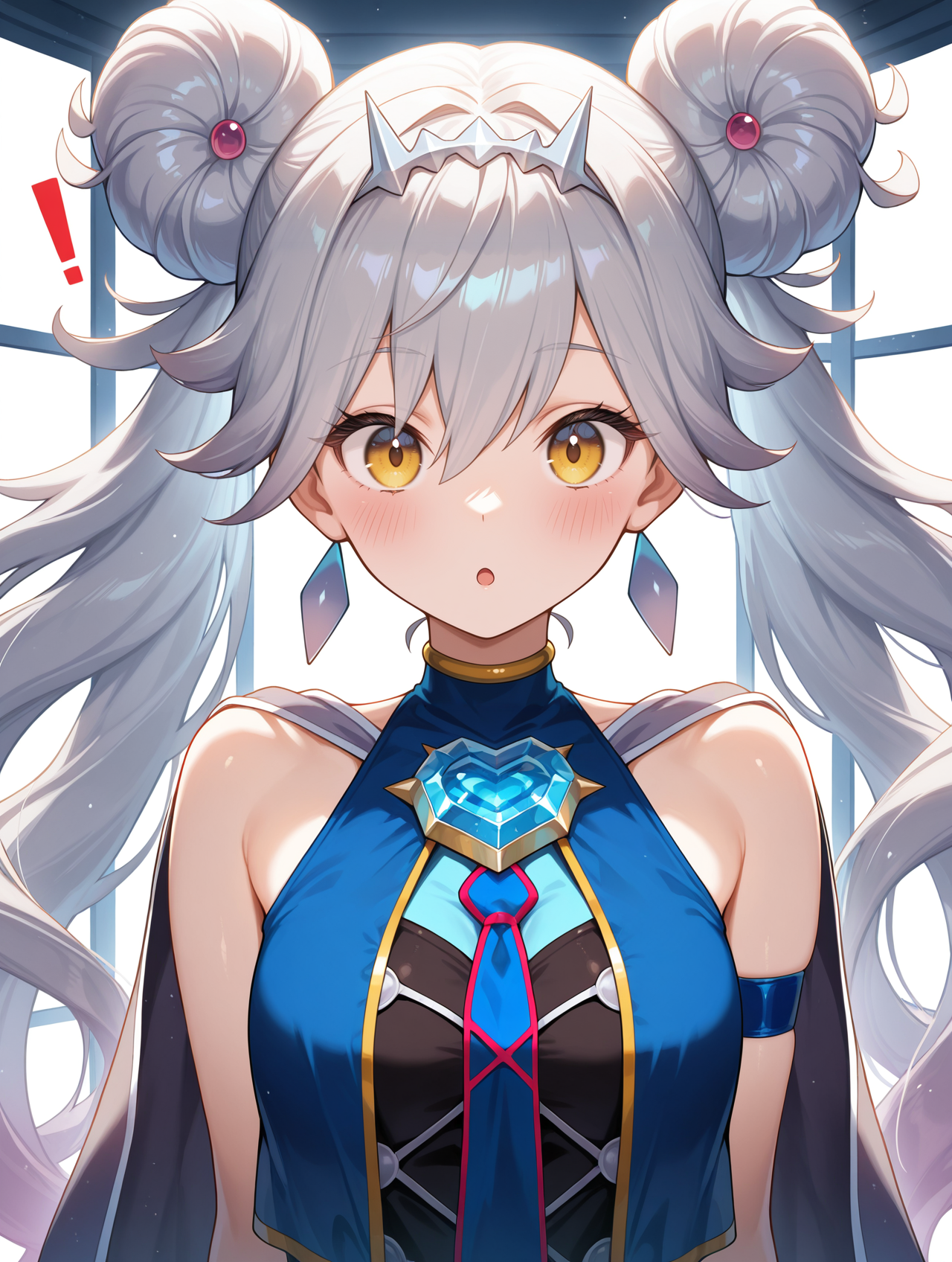 标签(服饰):银色头冠,银色耳环,斗篷,蓝色背心,水色胸饰,蓝色领结,黑色紧身胸衣,蓝色臂环,透明长裙,水色连裤袜,黑色高跟鞋