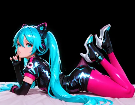 from side, looking to the side, pantyhose, high heel, one heel stretching pantyhose, one heel hooked in pantyhose, clothes pull, feet up, lying, on stomach,