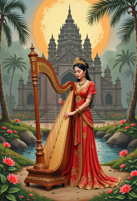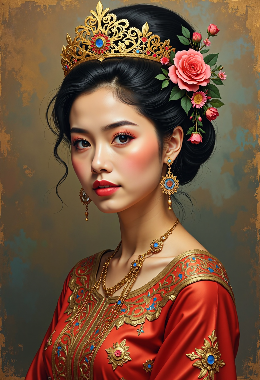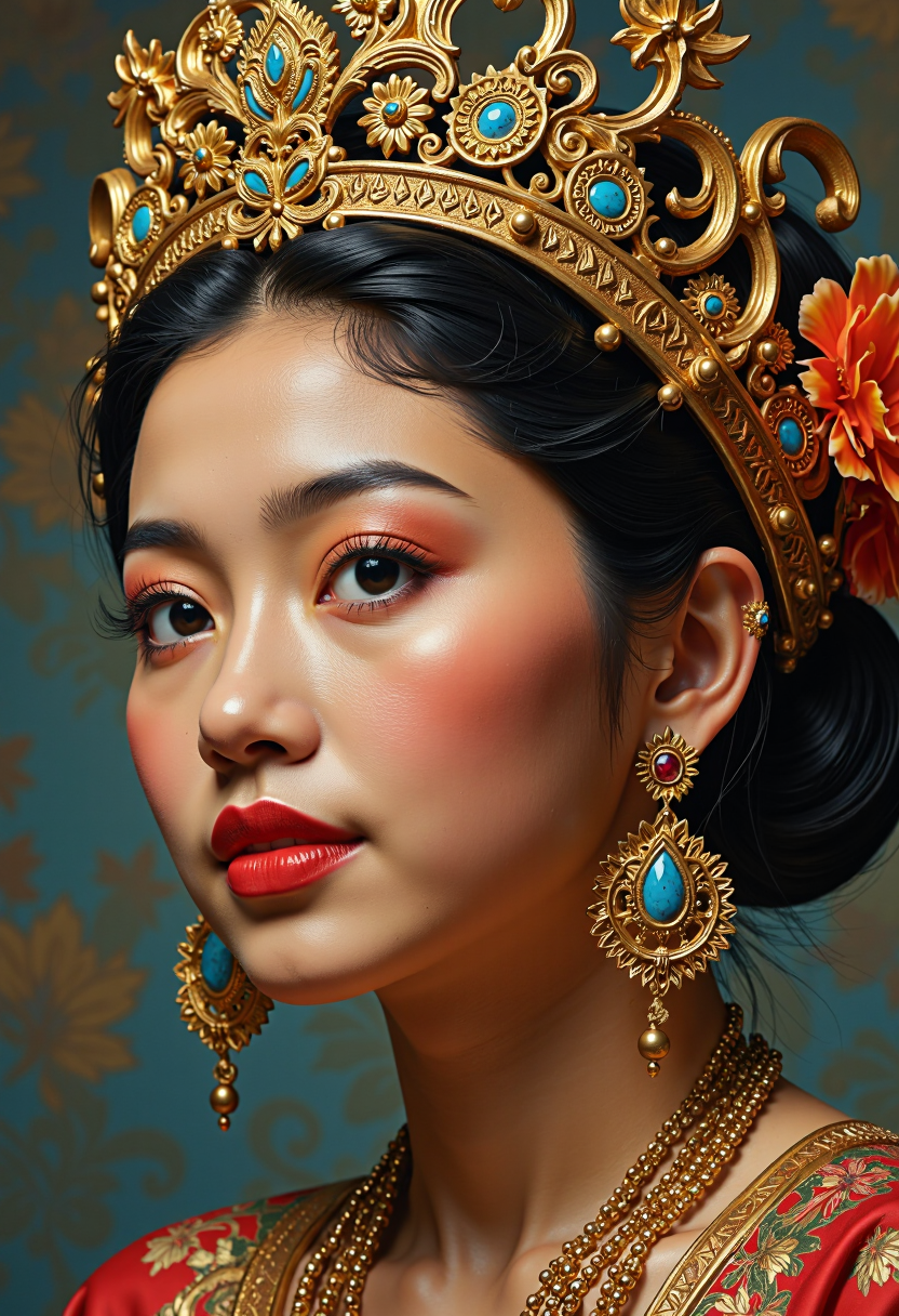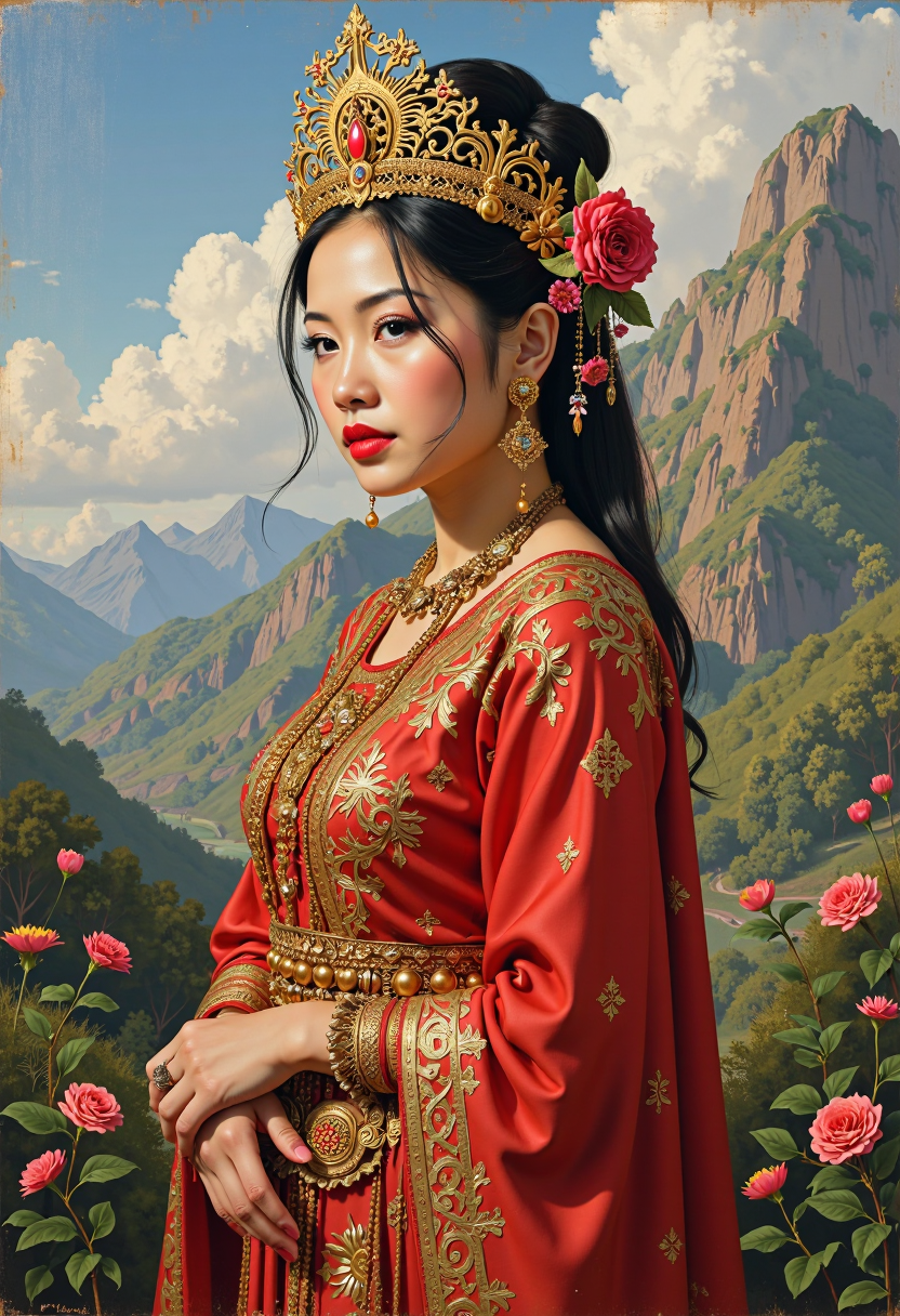 1340年から1357年まで生きたサヌンデ王女「デア・ピタロカ・チトラレスミ」のファンタジーロラ。古代の物語、インドネシア文化、インドネシア歴史。