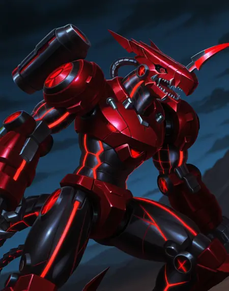 このLoRA用のプロンプトは(Chaosdramon, robot, Digimon, )です。