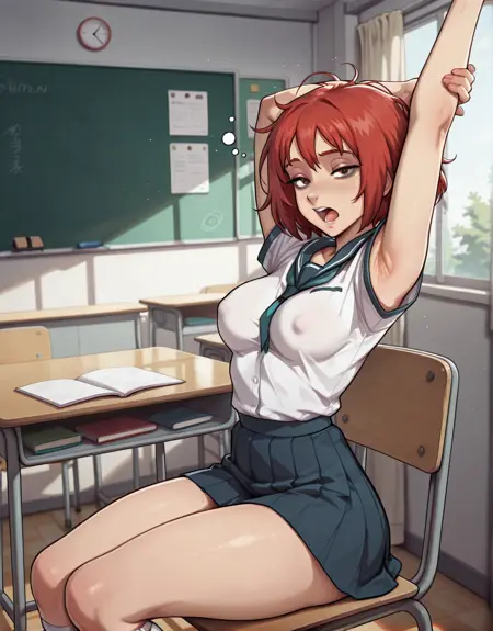 Will_Vandom,站立,绿色夹克,露肩,粉红色短裤,红发,短发,棕褐色眼睛,中等大小胸部,肚脐,白色背心,乳沟