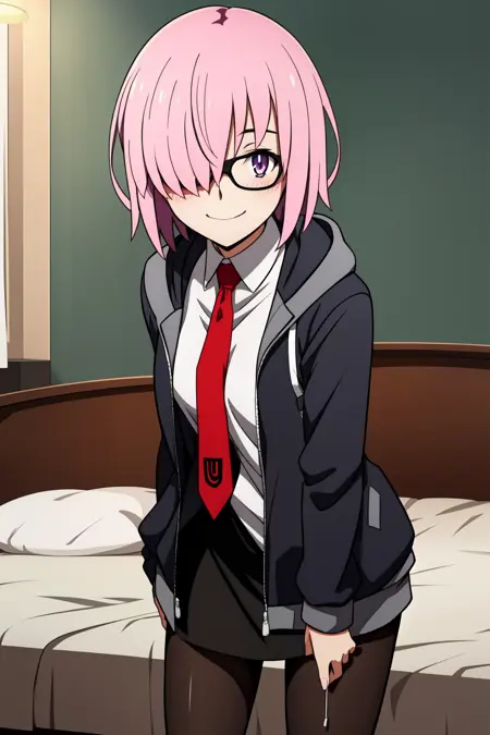 服装:连衣裙,夹克,丝袜,敞开的衣物,领带,眼镜,兜帽,黑色连衣裙,敞开式夹克,黑色丝袜,红色领带,灰色夹克,