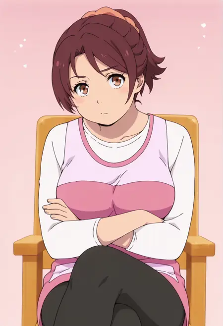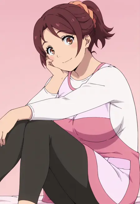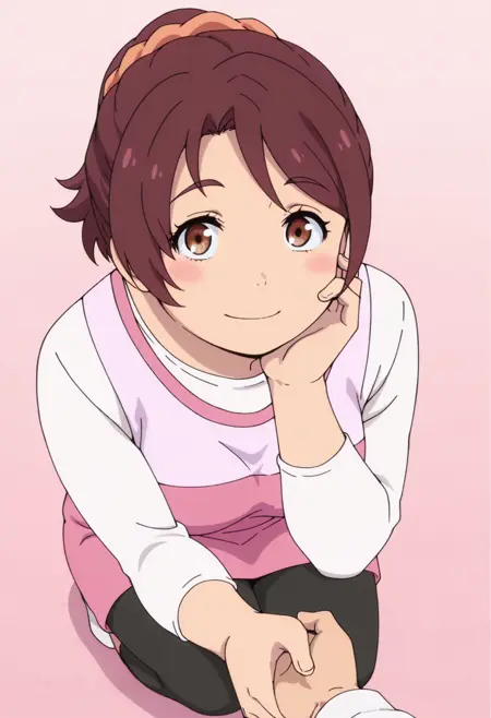 hanyu anna, plump, brown eyes, brown hair, short hair, ponytail,