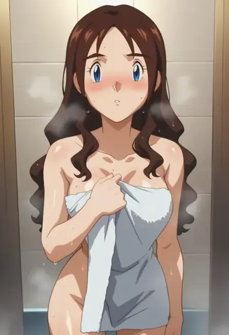 PMBailey、1girl、高いポニーテール、茶色の髪、青い目