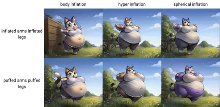 身体充气 - 介于局部充气与完全球形充气之间的状态。不是仅仅腹部膨胀,但尚未达到完全球形。最佳搭配 inflated arms(充气手臂) 和 inflated legs(充气腿部),因为此时四肢尚未完全下陷……所以不是“鼓胀”XD。