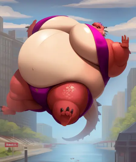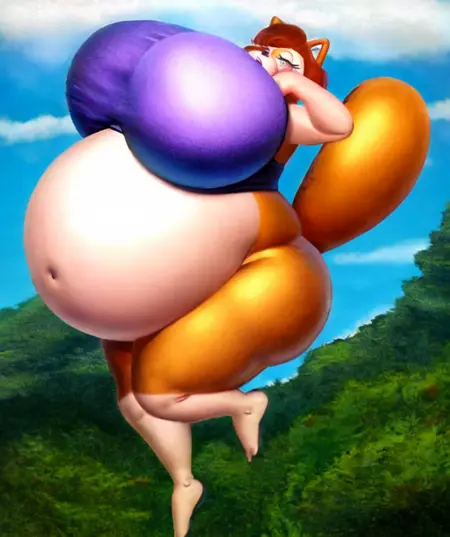 Body inflation - 球形になる直前の、膨らんだが完全な球形ではない外観。単なるお腹の膨らみではなく、まだ球形ではない状態です。inflated arms と inflated legs と組み合わせると効果的です(まだくぼんでいないため、puffyではありませんXD)。