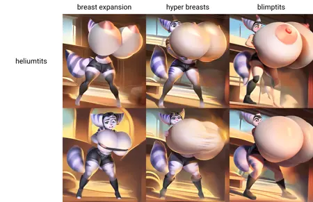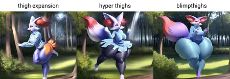 以前の _monobutt_ を _monorump_ に変更しました。SDが古いタグの「butt」の部分に過剰に反応してしまうため、より一貫性を高めるためです。また、頭部のインフレーションも少し追加しましたが、こちらもさらに改善が必要です。