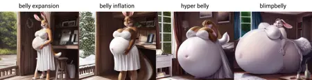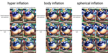 この最新の更新(上記の4.0モデル)では、過去数週間でデータセットとタグを完全に再構築しました。現在の学習用画像は合計1873枚です。自分が好きなすべてのインフレーションのコンセプトを1つのモデルに集約しようとしています。これまでの結果にはとても満足しています。以下に、各タグとその説明をリストアップしますので、お読みください~