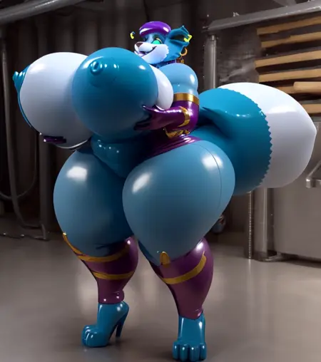 活体充气 - 产生闪亮的乳胶泳池玩具质感。与毛茸茸模型搭配效果最佳。可进一步用 living sex doll(活体性偶)、handles on hips(髋部手柄)、navel nozzle(肚脐喷嘴)、nipple nozzle(乳头喷嘴) 增强效果。但喷嘴效果尚不稳定,我需要更多训练数据。