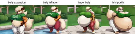这个标签效果稍弱,因为很多以腹部为中心的艺术作品更偏向整体身体充气或球形充气(稍后解释),但当你只想突出腹部时,这些标签依然很好用~