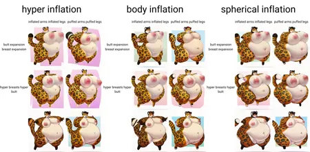 With this latest update (the 4.0 models above), I have spend the past couple weeks -completely- reworking the dataset and tags. Right now it's a total of 1873 images being trained. I am trying to make every inflation concept that I like all in one model, so far I'm pretty happy with the results. I will try to list every tag with some explanation below so keep reading~