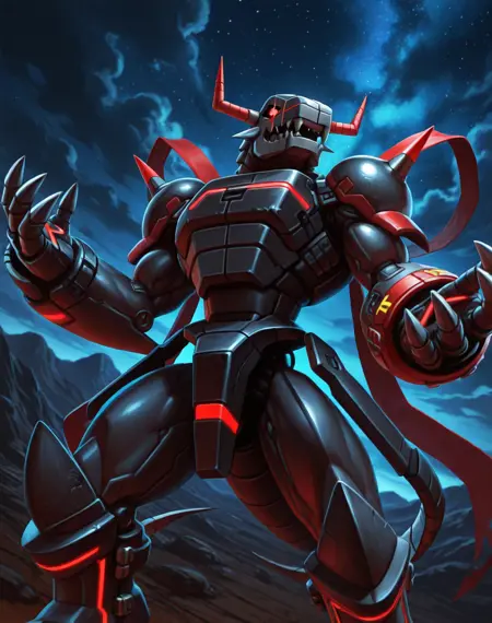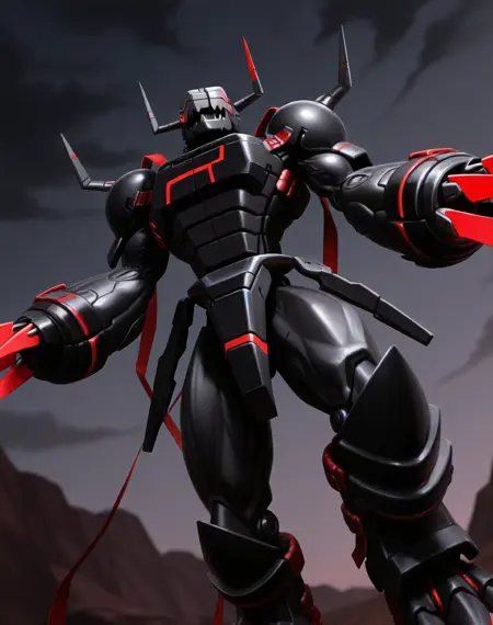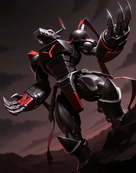 このLoRA用のプロンプトは次の通りです:(NeoCrimson, muscular, robot, Digimon, )