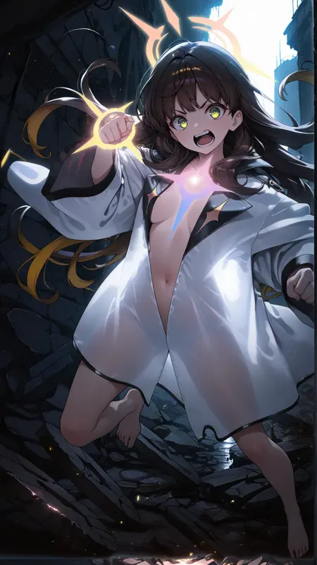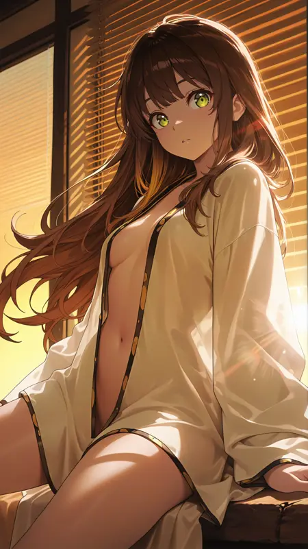 长袖,敞开的衣物,赤脚,衬衫,连衣裙,无内裤,宽袖,