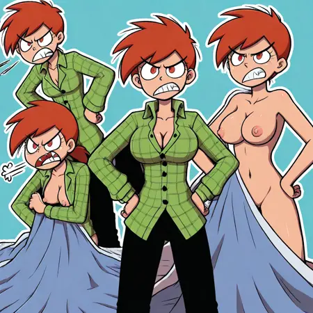 | 训练词汇 | Vecky, red hair, ponytail, green hairtie, buck teeth, buckteeth, freckles, blue eyes, eye lashes, medium breasts, petite body, wide hips, bimbo ass,已复制! green tank top, midriff, naval, black tights,已复制! green flannel shirt, midriff, naval, blight tights,已复制! |