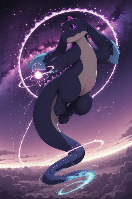 Feirune, anthro , furry, tail, horns, purple eyes, pink horns, dark blue fur , long ears,