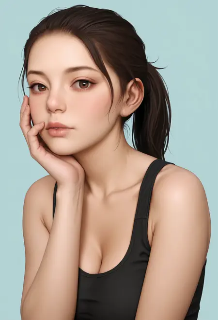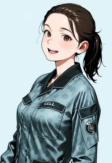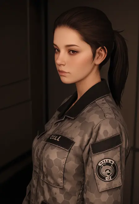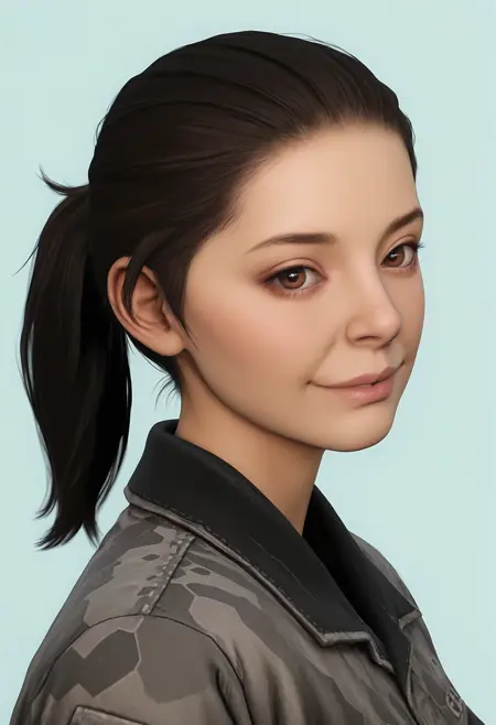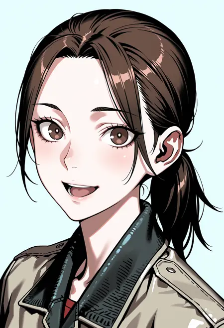 tstilf, 갈색 눈, 갈색 머리, 꼬리머리, 재킷, 바지