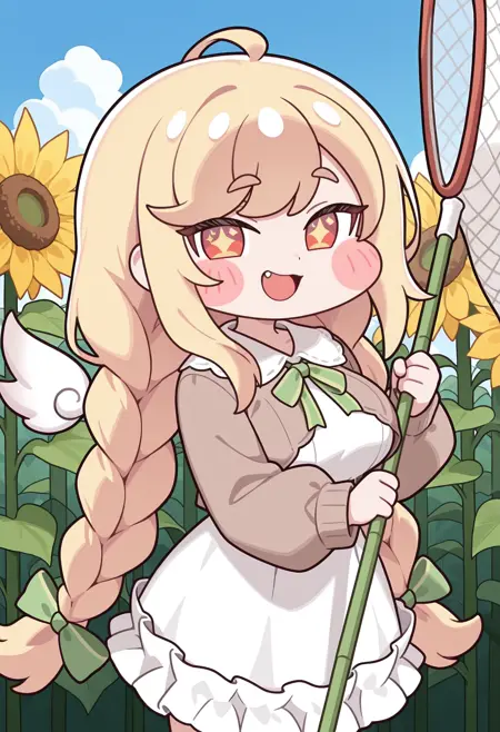 trclerfi、金髪、赤い目、+ +、星形の瞳、頬のステッカー、牙、大きな胸、離れた翼、