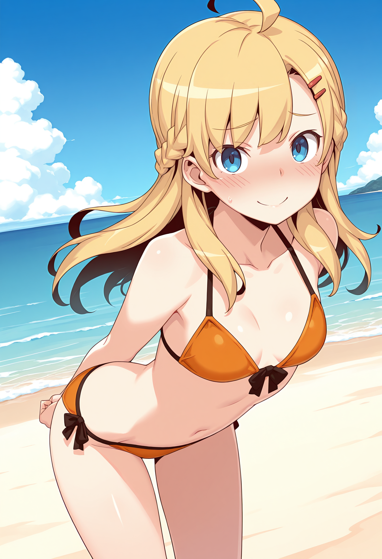 blrsaric, 長髪, 金色の髪, 青い目, アホ毛, 片方の髪を編み上げ,