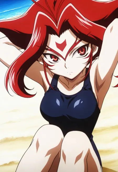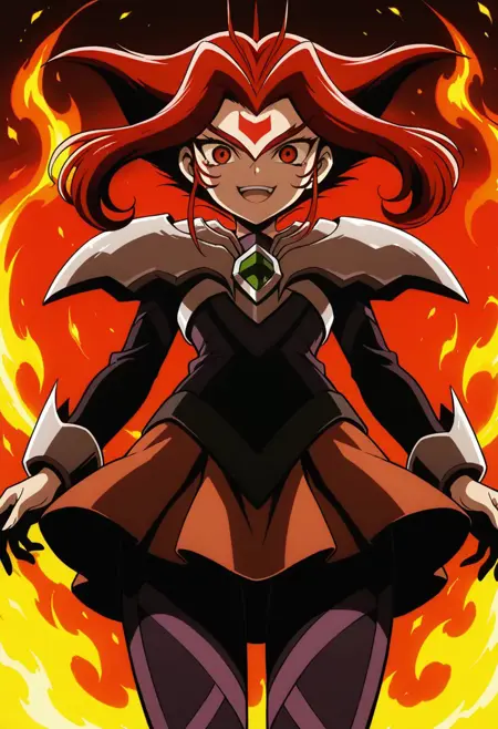 ashley,红发,尖刺头发,红眼睛,面部纹身,紧身衣,胸甲,长袖,裙子