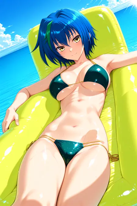 基础提示词:X3N0V1A, xenovia quarta, 蓝发, 短发, 双色发, 条纹发, 绿色条纹, 绿色眼睛