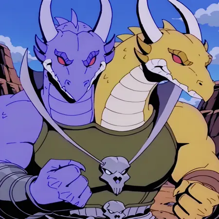 1993年のアニメ『マッティーマックス』に登場するヒドラ。このショーのドラゴンはいつもかっこいいと思っていたし、この番組はHDリリースされたことがなく、低解像度でのみ視聴可能だったため、トレーニングの結果がどうなるか気になっていました。番組の映像は古いCRTレコーディングのリップだけでしたが、いくつかアップスケールされた1080pエピソードを見つけ、それを使ってこのLoRAをトレーニングしました。これは少し役立ちました。いくつか問題はありますが、結果にはとても満足しており、驚いています。歯や舌が正しく生成されないことがあります。腰布はより矩形に、つまり腰巻きのように見え、3番目の頭が生成されることがあります。また、体の模様の色を正しく再現するのが時々難しいです。暗いドラゴンだけが生成され、明るいドラゴンが生成されないという問題もあります。よりぼやけず、より本物のドラゴンの外観にしたい場合は、重みを0.1〜0.2下げてください。体の色が正しく一致しない場合は、ポジティブプロンプトに「連結、色が不一致な体」と入れてみてください。それですこし改善するでしょう。最後に、適切にプロンプトを設定すれば2つの頭を分離することも可能で、これは私が予期していなかった素敵な追加機能です。