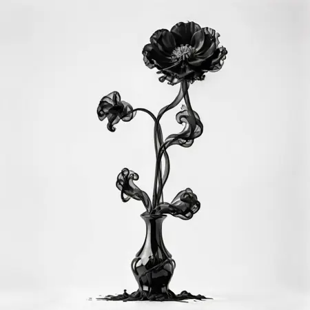 일반적인 간단한 프롬프트는 다음과 같습니다: "하얀 방 안에 꽃이 꽃병에 놓인 사진, 최고 품질, 회색조, 단색"