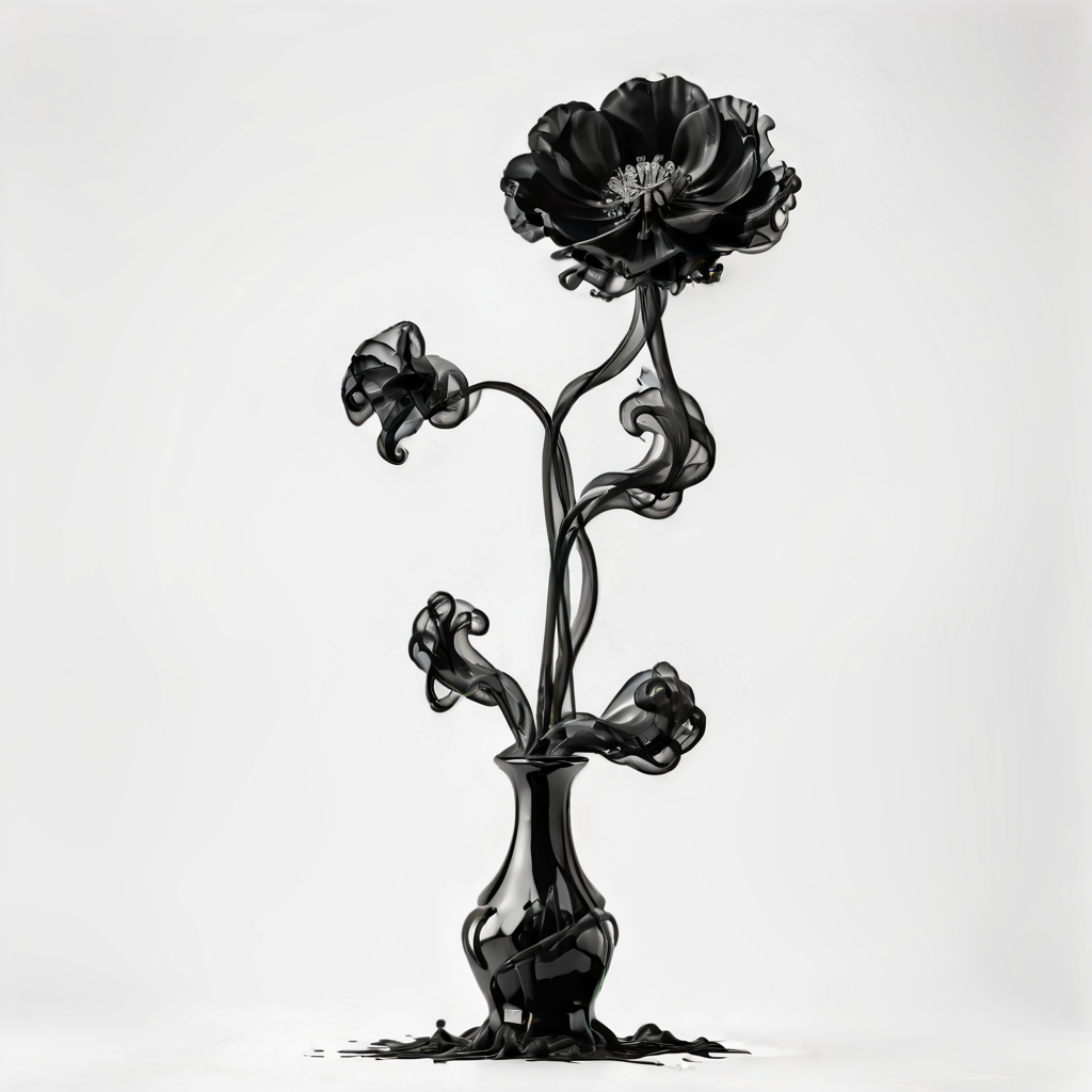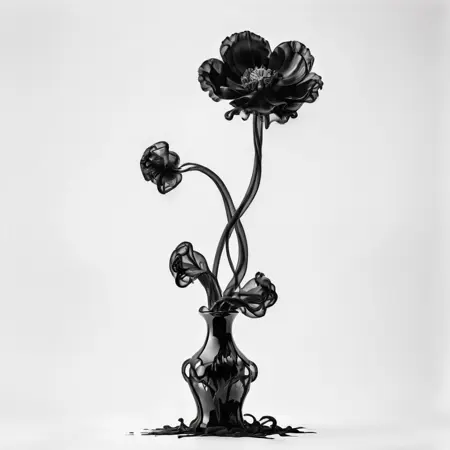 一般的なシンプルなプロンプトは以下の通りです:「白い部屋に置かれた花瓶の花の写真、最高品質、グレースケール、モノクロ」