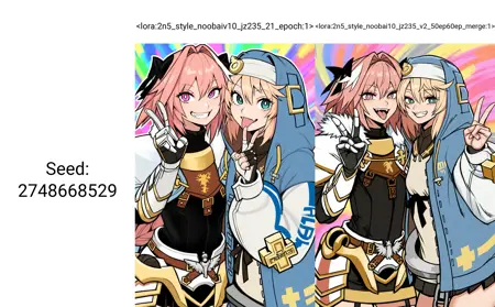 NoobAI knows 2n5 already, but its mostly his older works. And the existing LoRA's here on civit suck, with worse training settings and they also probably used most of 2n5's older art when training. What I wanted was a LoRA that could replicate his newer more modern style.