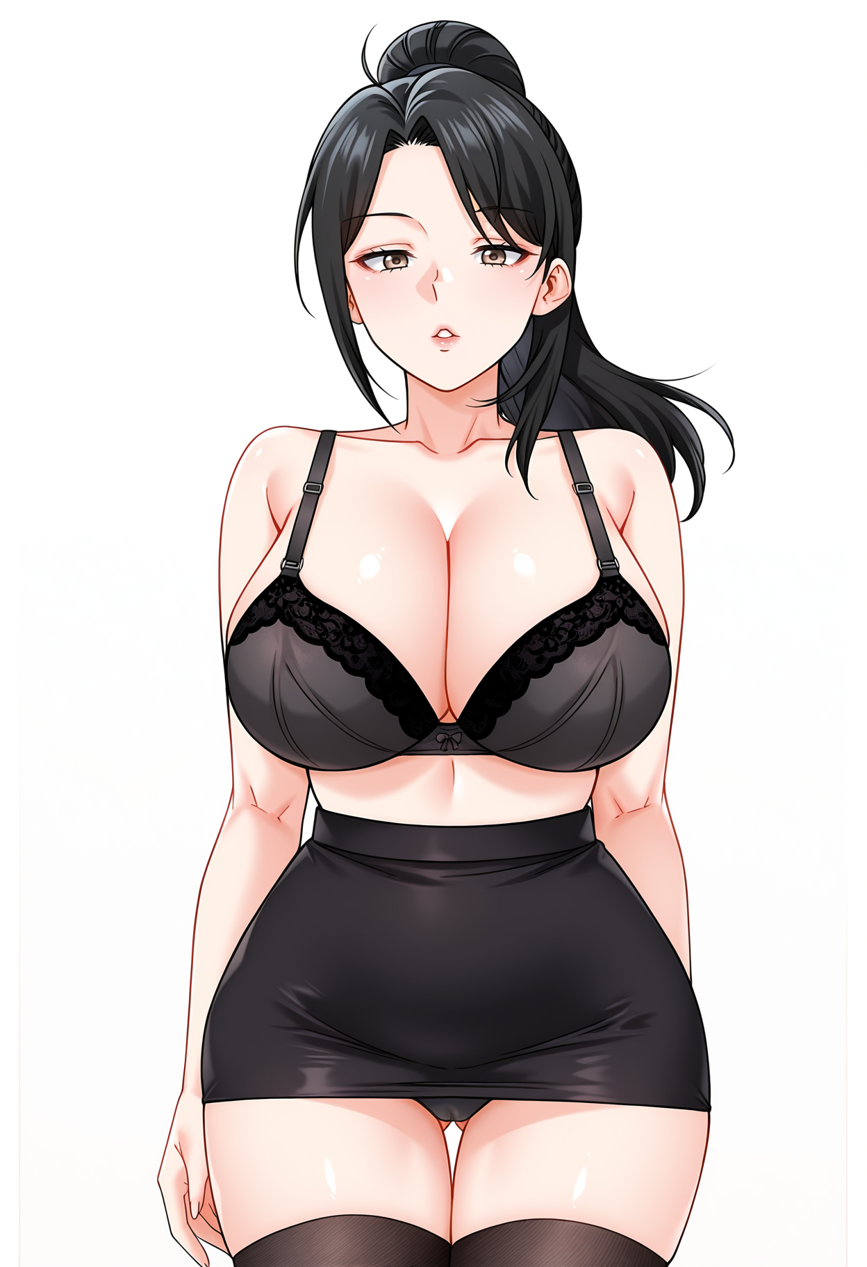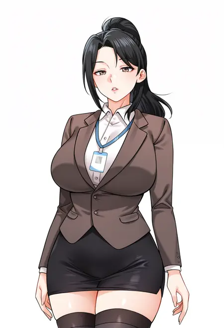 | 训练词汇 | lim_bomi, brown eyes, black hair, high ponytail, long hair, parted bangs, large breasts, mature female,已复制! outfit1, lanyard, id card, blazer, brown jacket, skirt suit, pencil skirt, black skirt, white shirt, collared shirt, long sleeves, black thighhighs, zettai ryouiki, black footwear, high heels,已复制! outfit2, lanyard, id card, open clothes, open shirt, unbuttoned shirt, partially unbuttoned, white shirt, dress shirt, collared shirt, long sleeves, shirt tucked in, plunging neckline, collarbone, cleavage, no bra, high-waist skirt, pencil skirt, black skirt, black thighhighs, black footwear, high heels,已复制! outfit3, black bra, cleavage, bare shoulders, pencil skirt, black skirt, miniskirt, underwear, thighhighs, black panties,已复制! |