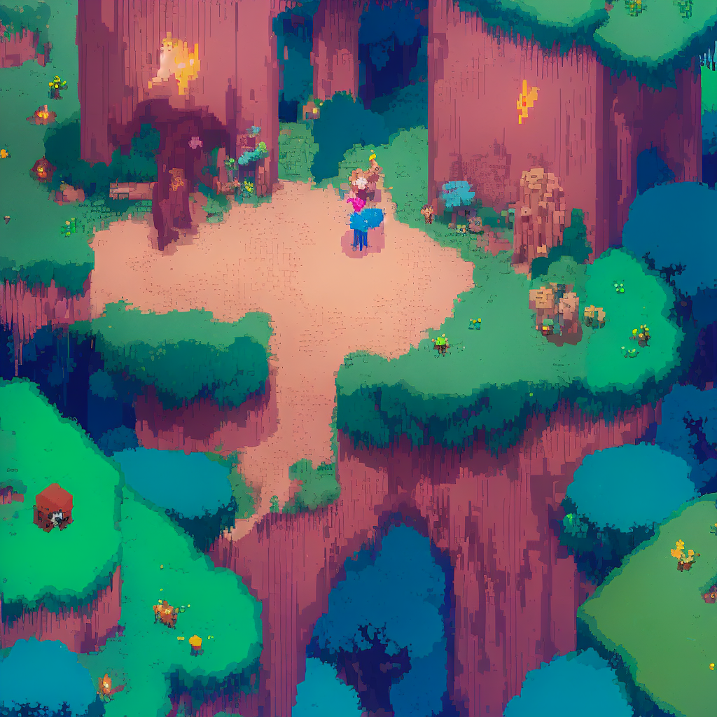 这是 DreamShaper v7 与基于《Hyper Light Drifter》游戏图像训练的 DreamBooth 的混合模型。该模型经过训练,可用于生成俯视角的像素艺术关卡设计,也可通过 img2img 为图像增添更多像素艺术风格。虽然有其他创作者制作了类似的 LoRA,但此检查点更专注于创建关卡设计,而不仅仅是赋予像素艺术风格。激活词为:“hylidr style”,但即使不使用它也可以正常运行。