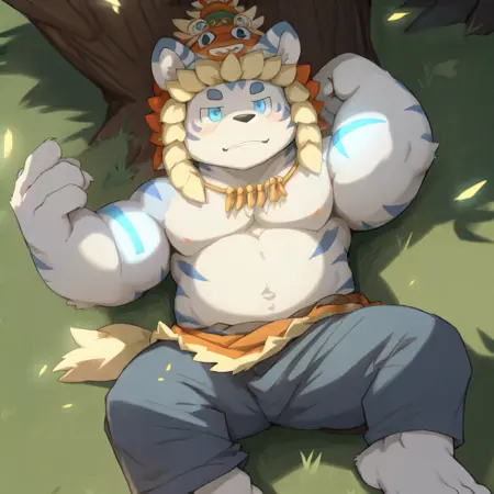 트리거 단어: lei luo, 파란 눈, 흰 호랑이, kemono,