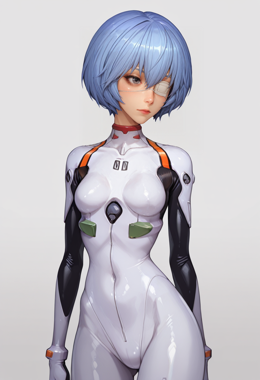 绫波丽cosplay,短发,蓝色头发,鲍伯头,头发遮住眼睛,白色紧身衣