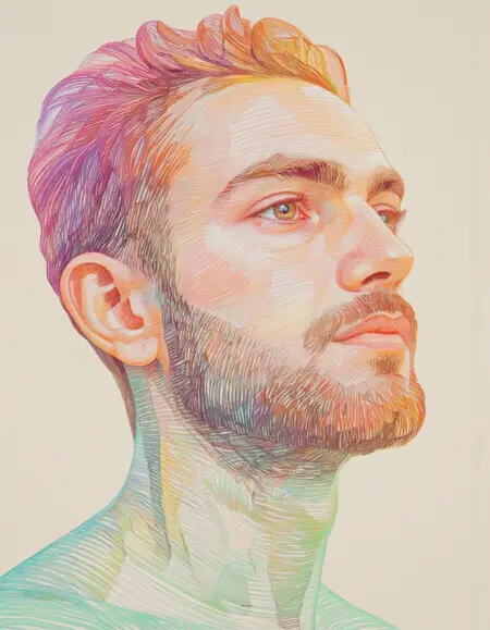 Ferreyraは、小さな多色の幾何学的断片を用いて、複雑で表現豊かな画像を構築する独自の視覚言語を確立しました。彼の作品は、知覚やデジタルアイデンティティといったテーマを探索し、自身が「現代の複雑なデジタル時代」と呼ぶものを反映しています。2000年代初頭以来、彼は視覚的フィールドを解体するスタイルを洗練させ、顔や人物が層状の色塊と方向性のあるハッチマークを通じて浮かび上がり、古典的な優雅さと現代的な抽象性を両方呼び起こしています。