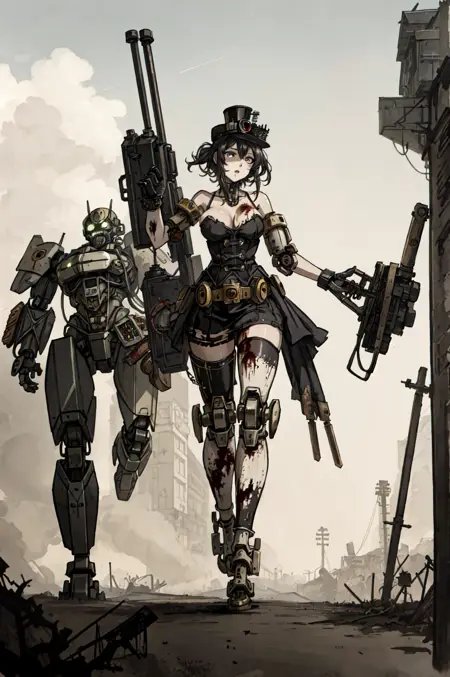 zaunt 및 플라워 LoRA를 동양 미스 및 메카 합성 모델과 추가로 합성한 경우.