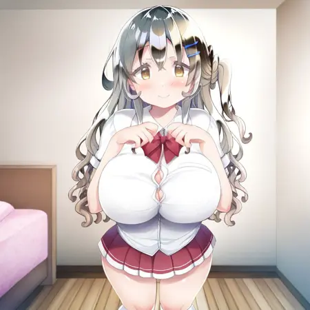 Recommend Prompt:Nozomi Kunoki, yellow eyes, grey hair, long hair, wavy hair, hair ornament, one side tail, hairclips,