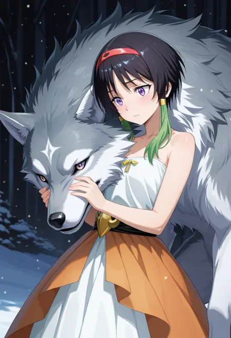 트리거 단어: towa (tensura), 검은 머리, 다색 머리, 녹색 머리, 긴 머리카락이 달린 단발, 보라색 눈