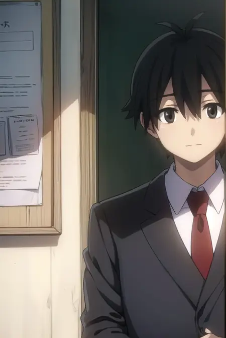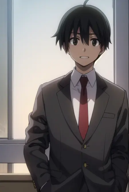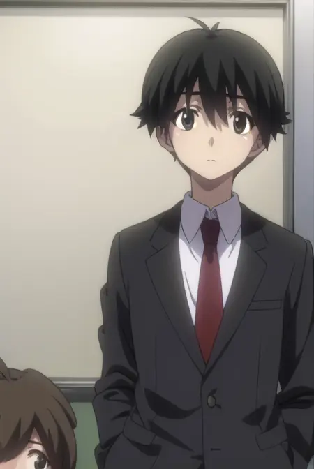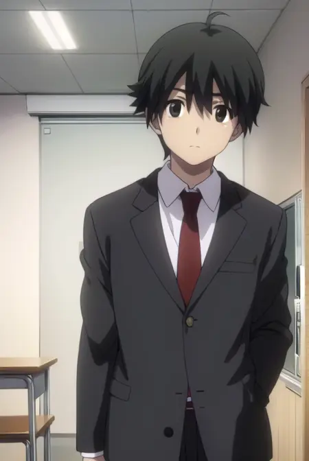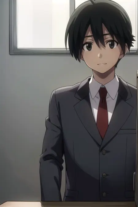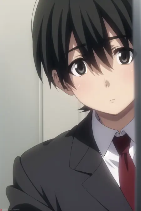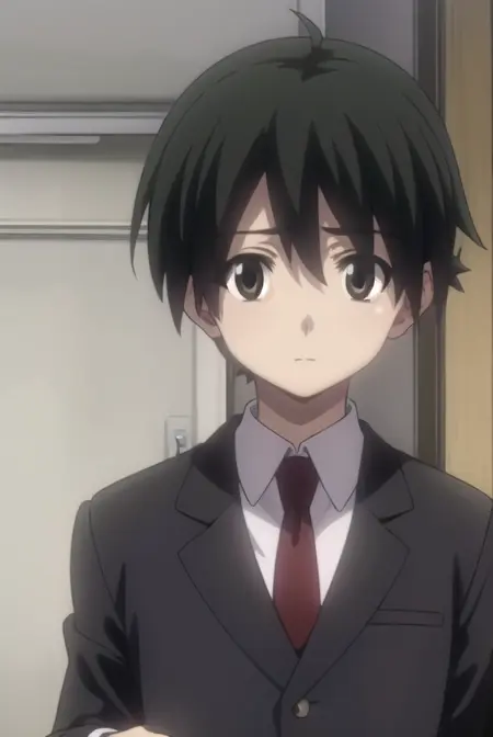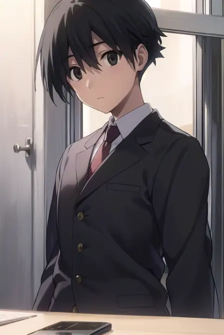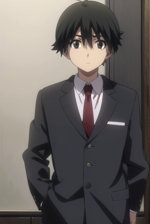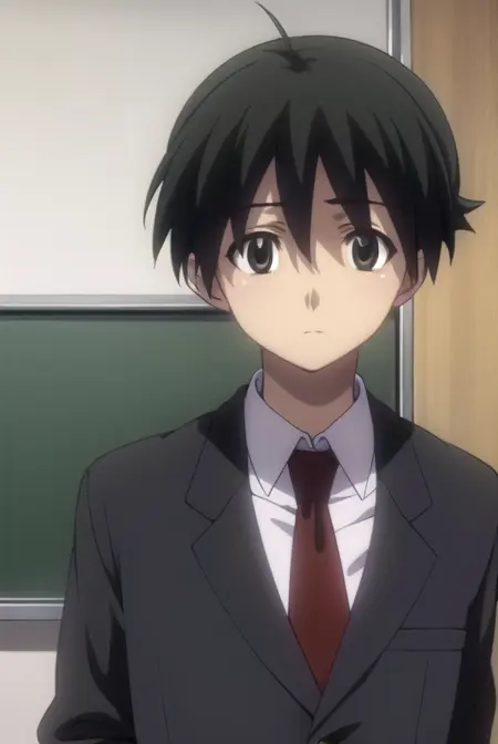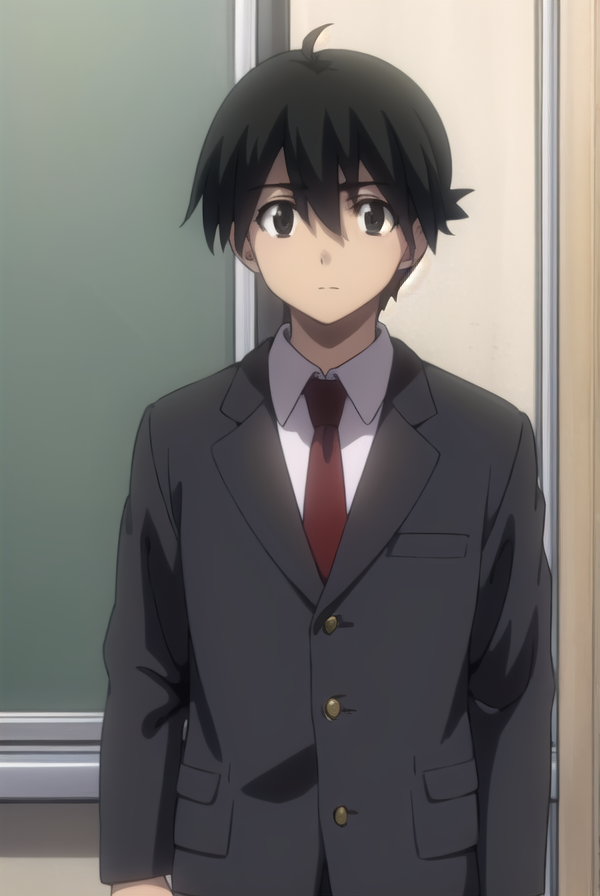 makoto itou, black hair, (black eyes:1.5), short hair,