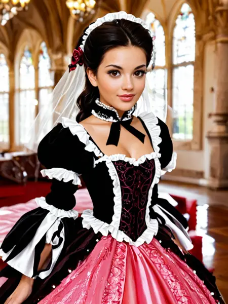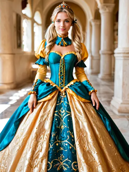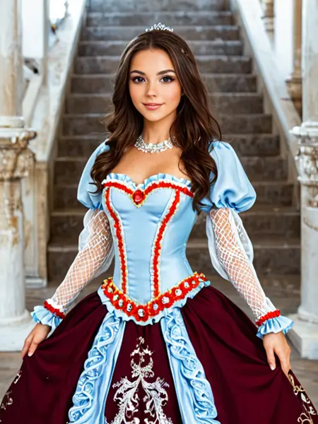 princesscore激活该美学,或通过具体裙装与场景提示进行引导。