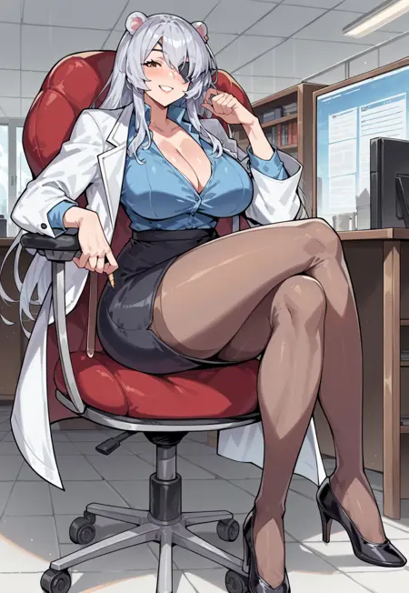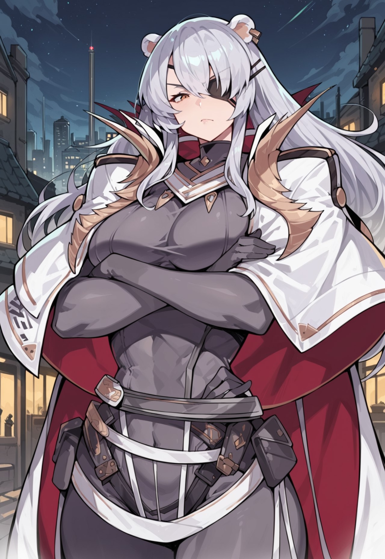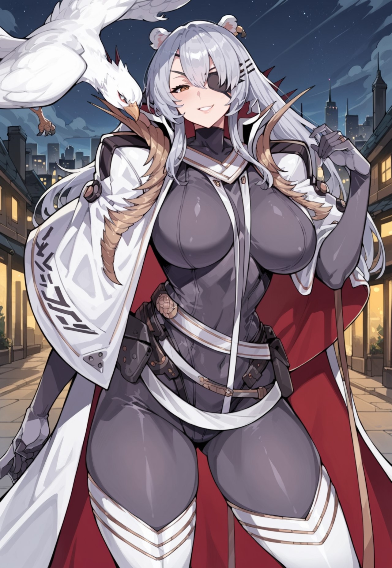 Khalipe_CZN, eyepatch, silver hair, long hair, brown eye, animal ears,