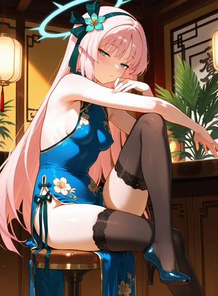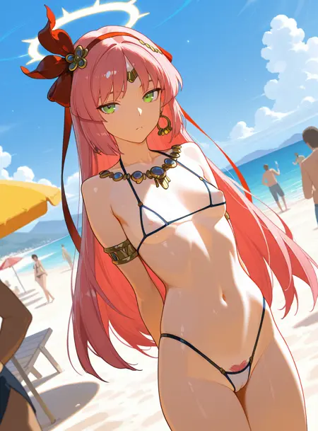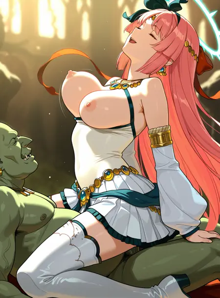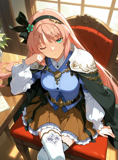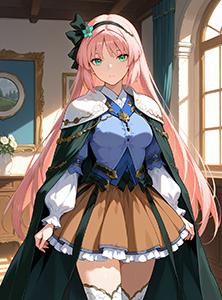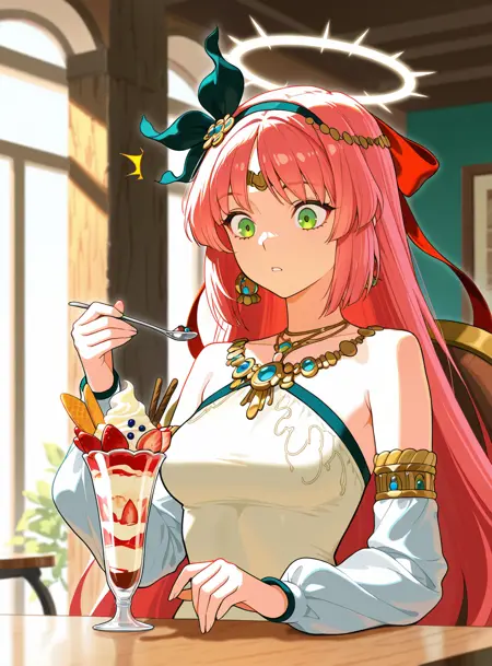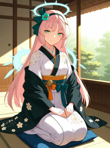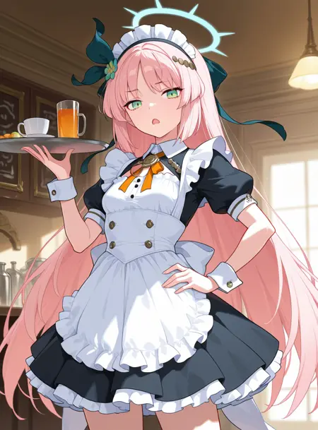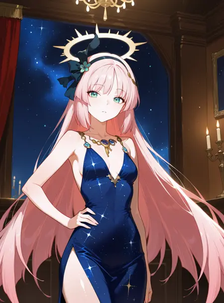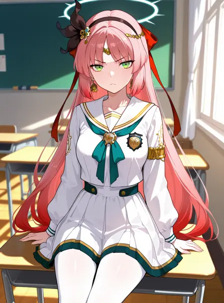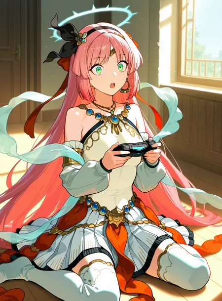long hair, halo, ribbon hairband, pink hair, circlet, red hair ribbon,服/衣服/clothing: