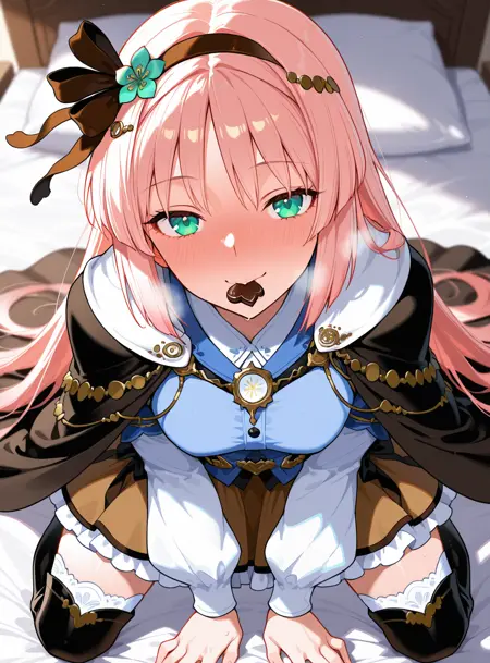 blue shirt, puffy long sleeves, cape, frilled brown skirt, ↑スカートの再現度がやや低い/裙子的还原度不太好/reproduction accuracy of skirt is relatively low.靴/鞋子/Footwear: