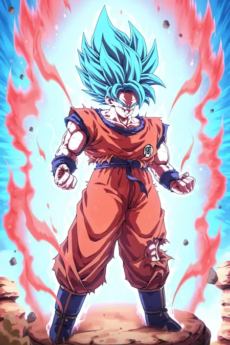 kaiouken,aura,(blue_aura:1.2),super saiyan blue,blue kaiouken