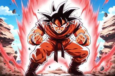 4枚の画像で学習され、体全体がゴクウの特徴的なパワーアップのように強烈な赤いエネルギーを放つことができます。