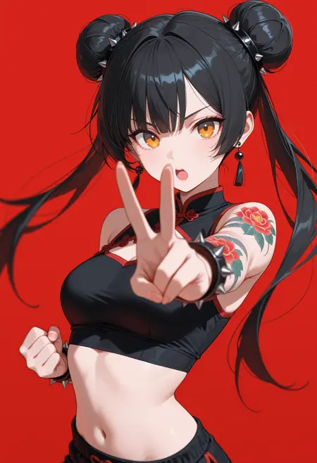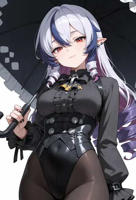 Illustriousの金属的な美学とPonyのかわいさを組み合わせるには、以下を追加:
